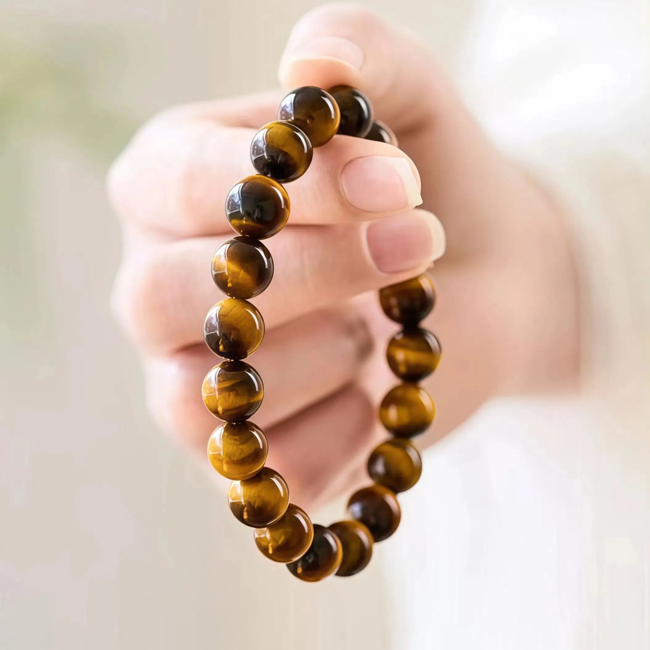 (Energy Collection) Powerful Energy & Protection Beaded Bracelet Natural Tiger Eye Stone for Strength and Confidence