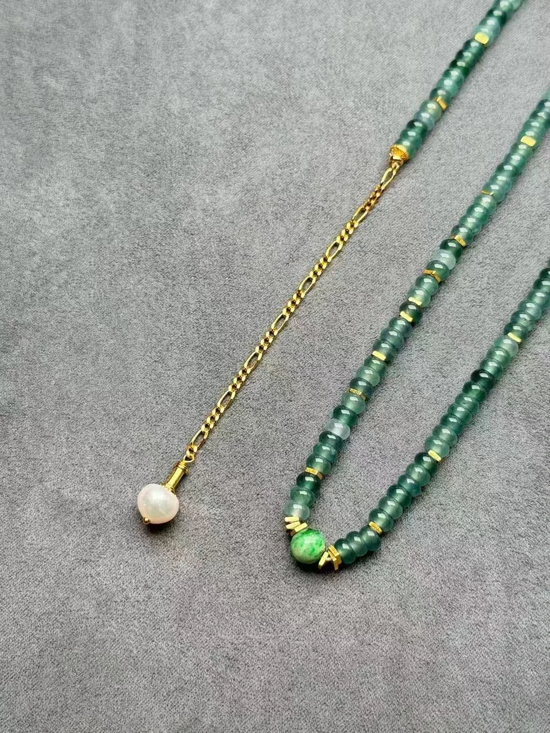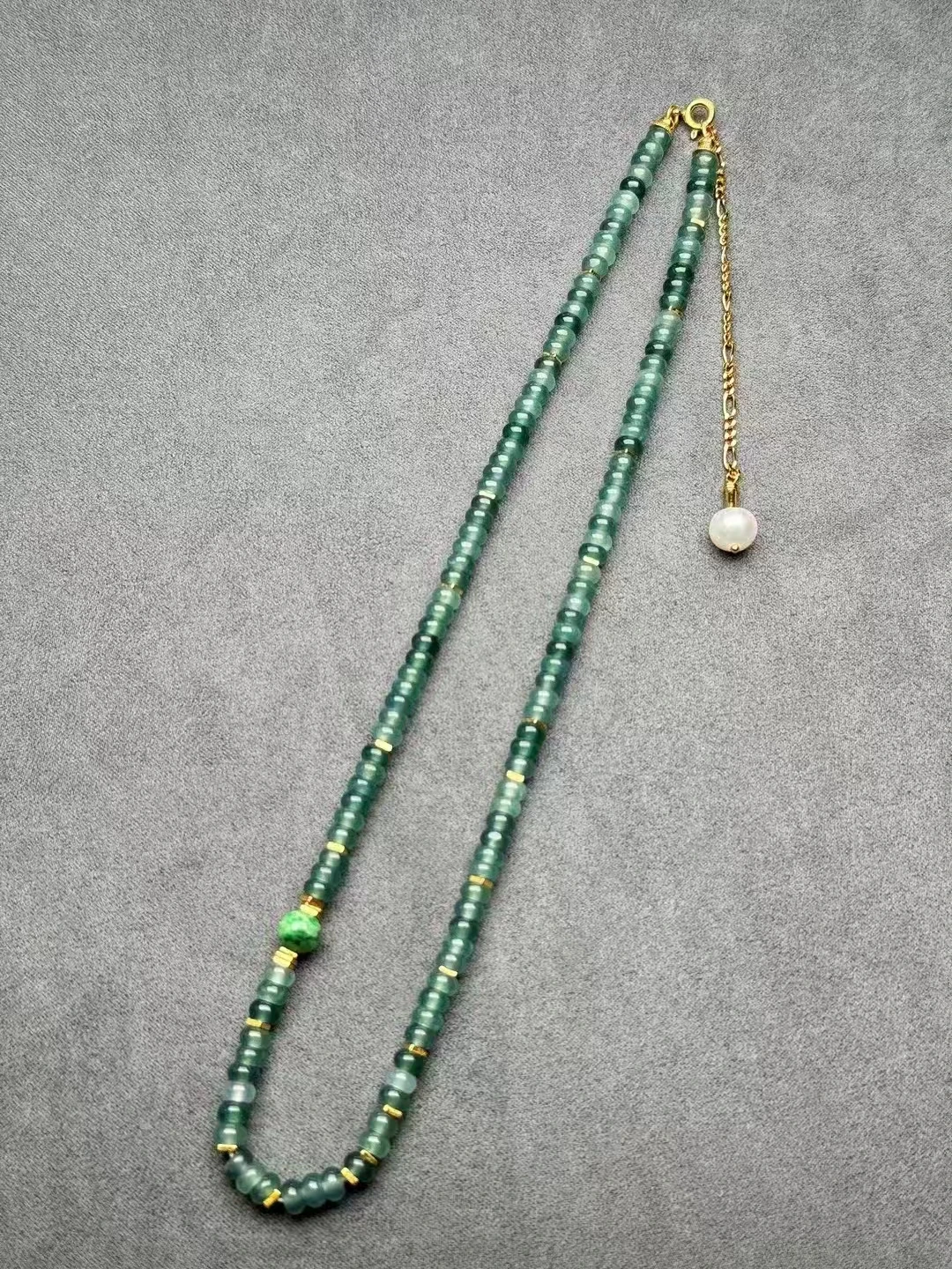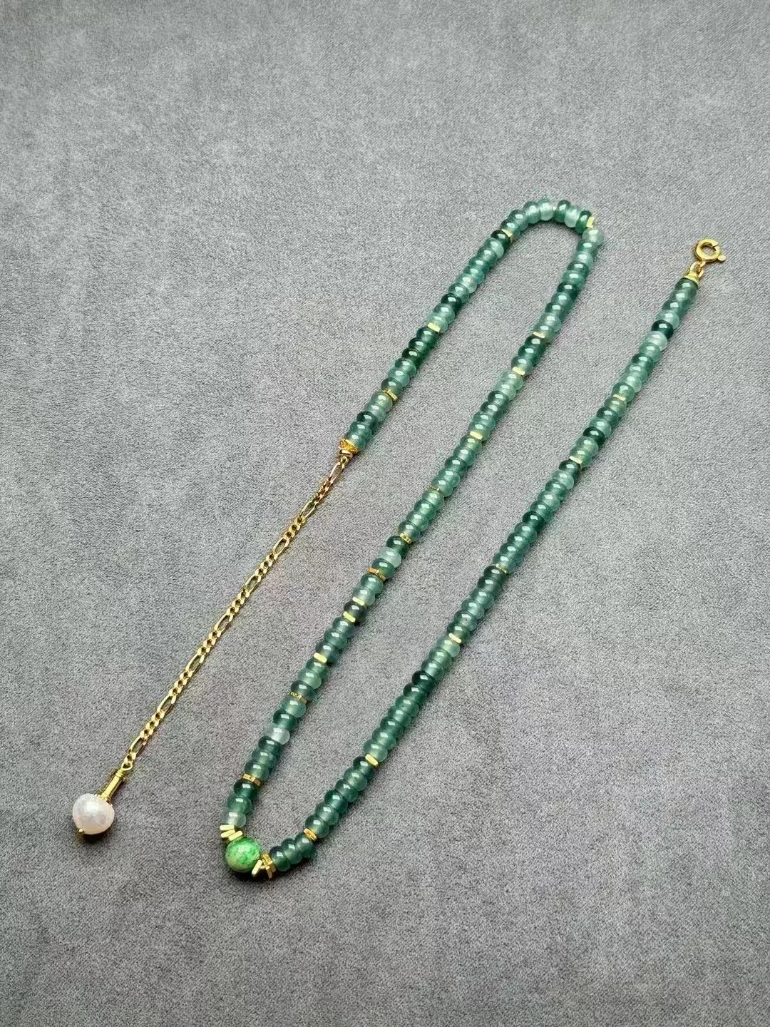 S925 Silver and 18K Gold Handmade Necklace with Natural Hetian Jasper Jade Beads Chain Certified