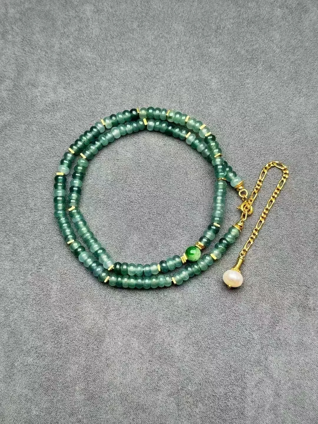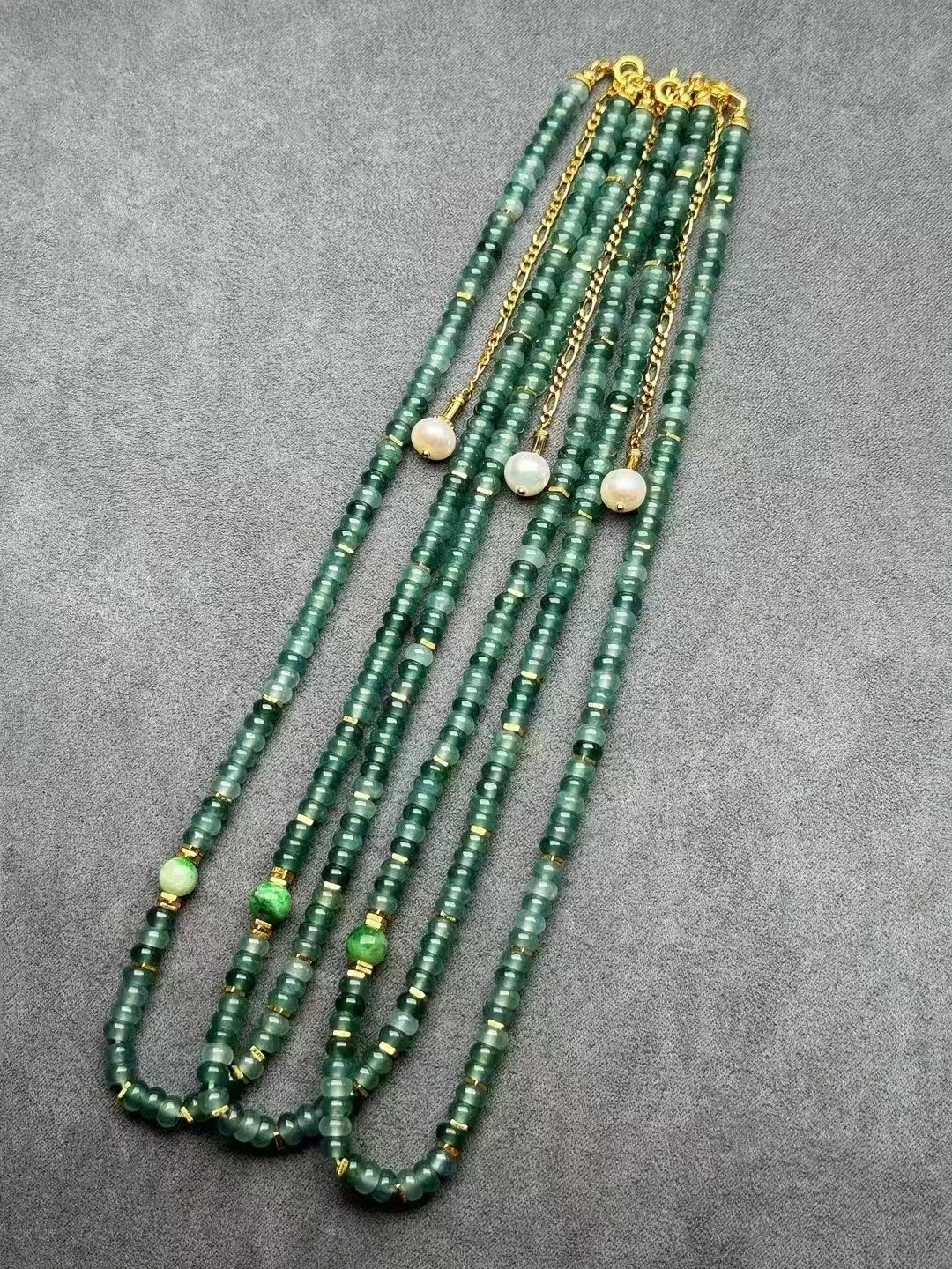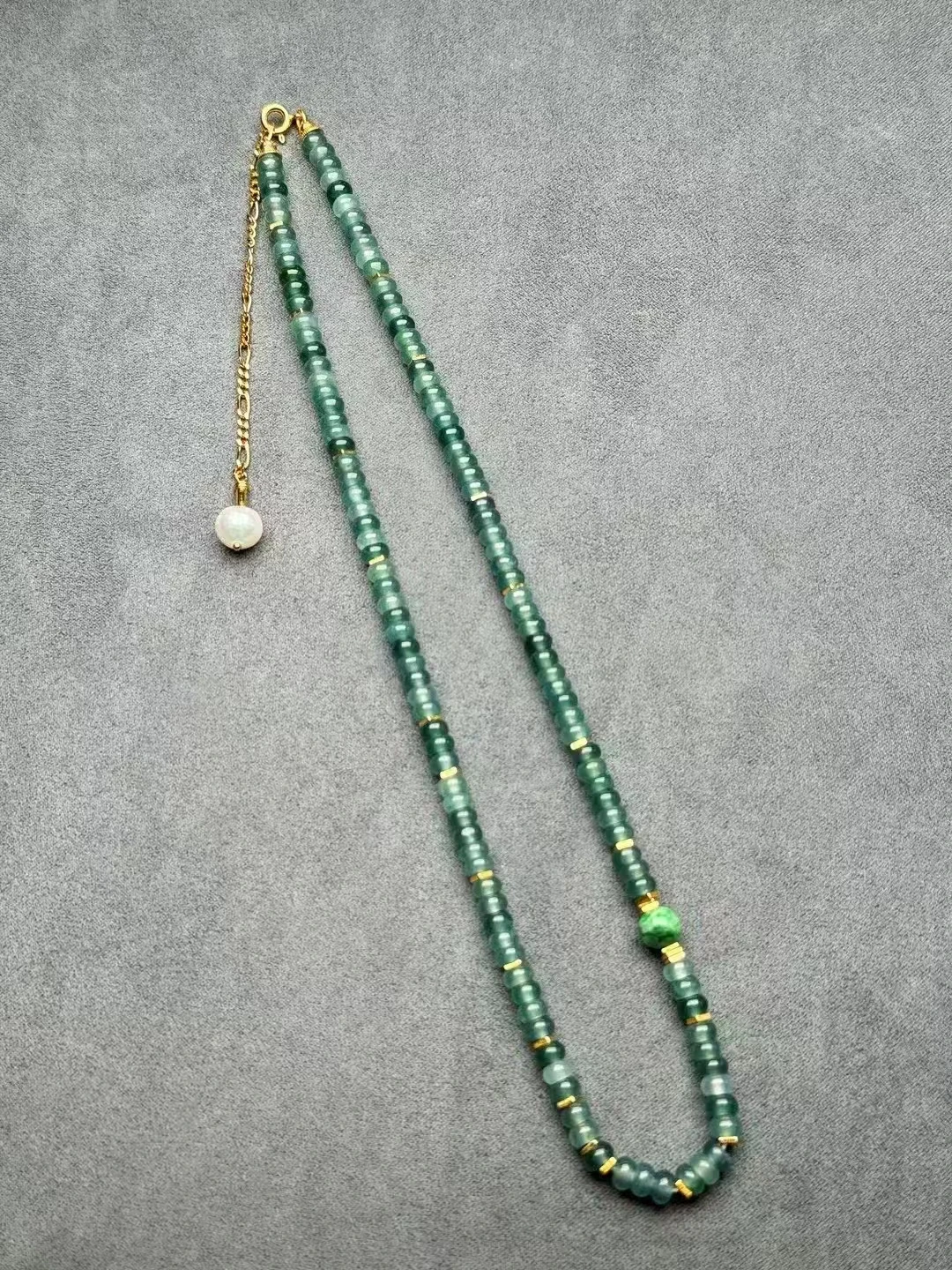 S925 Silver and 18K Gold Handmade Necklace with Natural Hetian Jasper Jade Beads Chain Certified